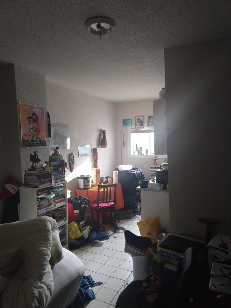 To wrap things up, here is an improbably artsy picture I took of my Studio of Solitude before heading out to the experimental vaccine clinic early yesterday morning. The lighting was just too good to miss. Behold, my pigsty in its epic glory!